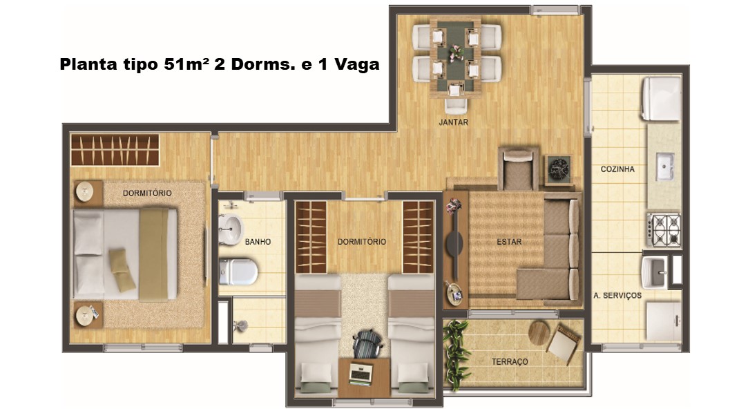 Apartamento 52m² 2 dorms. 1 vaga com elevador
